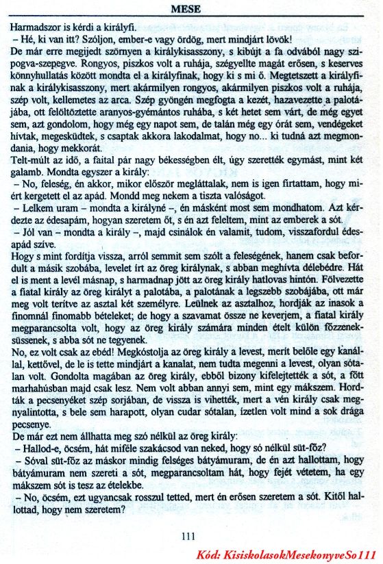 Fõtéma: Egy igaz magyar népmese a sóról, az ételek (nátriumkloriddal) sózásának nélkülözhetetlenségérõl