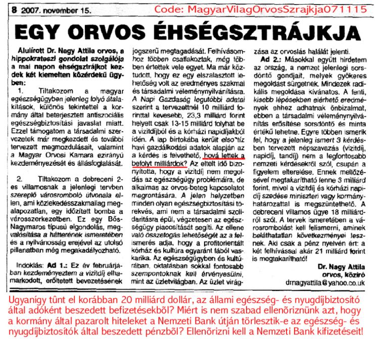Fõtéma: 20 milliárd dollár dollár egészségbiztosítási és nyugdíjbiztosítási befizetés elsikkasztása arra, fõleg a károkat okozó hamis pályázatok finanaszírozására, stb. , hogy az elsikkasztott külföldi hiteleket törlesszék belõle, hogy ilymódon további elsikkasztható hiteleket kaphassanak (a kormányok)?