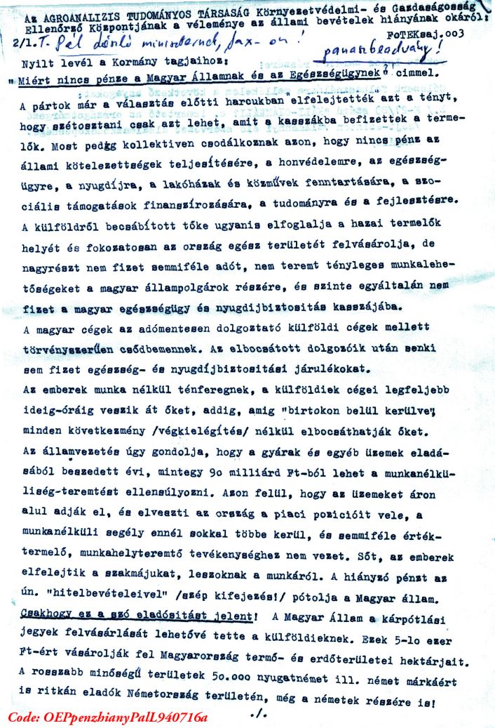 Nyilvános közérdekû bejelentés Sólyom László köztársasági elnökhöz: Az egészségügyi hozzájárulásként és nyugdíjalapba befizetett, lakossági tulajdont képezõ pénzekkel tételesen el kell számolnia az államnak, mielõtt ahhoz hozzányúlhatna az Országgyûlés és/vagy a kormány, mert a nyilvántartások szétesnek, ELTÛNHETNEK a több biztosítós rendszerre áttéréskor (Bp., 2008. 01. 22. Tejfalussy András)
