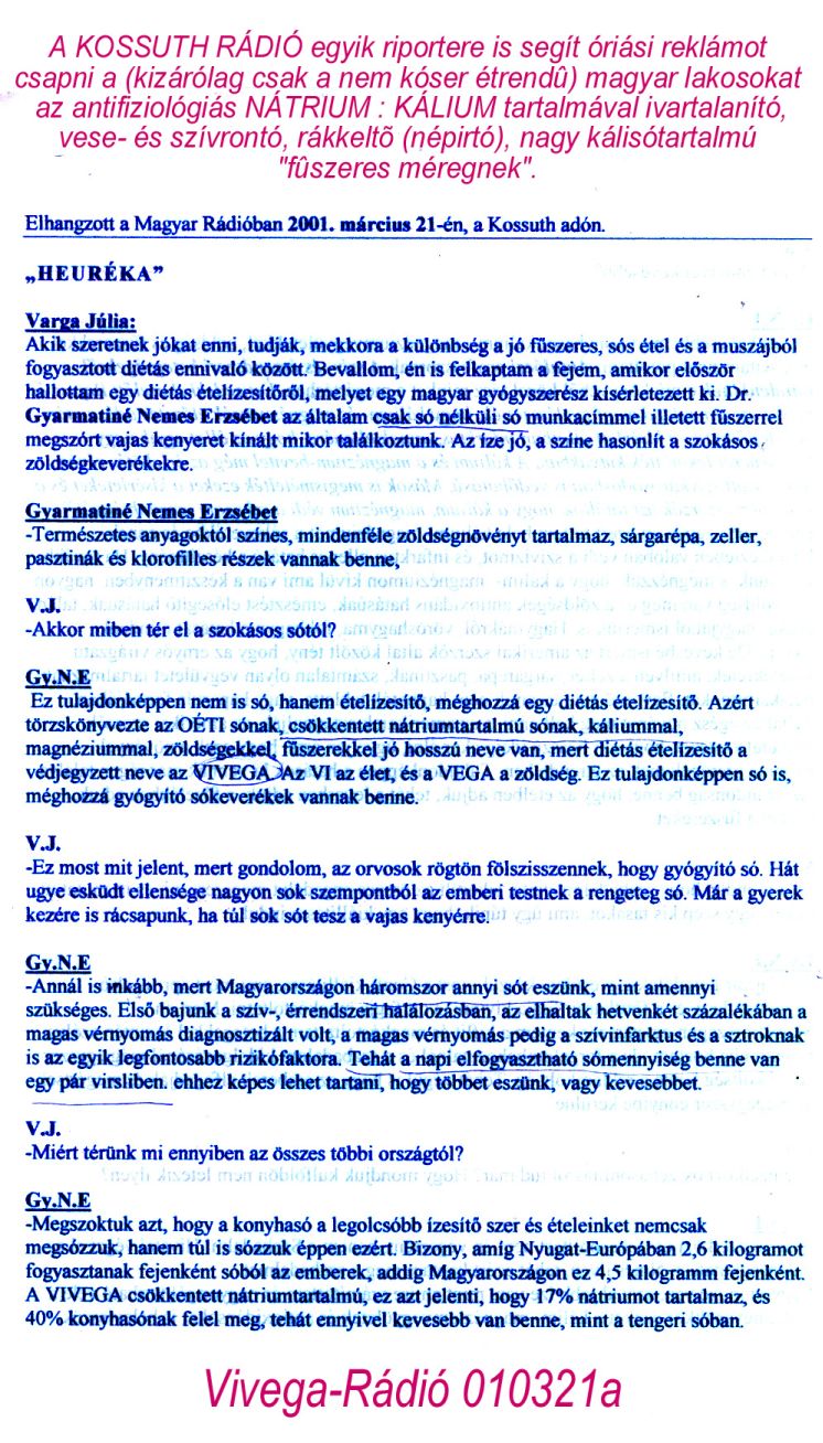 MIUTÁN A DR. TORGYÁN JÓZSEF MINISZTER ÚR ÁLTAL (A MI KÖZÉRDEKÛ BEJELENTÉSÜNK ALAPJÁN) INDÍTOTT VIZSGÁLAT EREDMÉNYÉT KÖZLÕ HIVATALOS IRATBAN HAMISAN IDÉZTÉK A KÁLISÓ A LEGKISEBB MENNYISÉGÉT IS VALAMENNYI ÉTKEZÉSI SÓBAN TILTÓ MAGYAR SZABVÁNY SZÁMÁT ÉS A SZABVÁNY BETARTÁSÁRA KÖTELEZÕ MINISZTERI RENDELET SZÁMÁT IS, EGY IDÕ MÚLVA ELTÛNTETTÉK A MINISZTERI RENDELETET ÉS EGY MÁS RENDELET ÚTJÁN MEGENGEDTÉK A KONYHASÓ HELYETT KÁLISÓT TARTALMAZÓ SÓKEVERÉKEK ÉTKEZÉSI CÉLRA TÖRTÉNÕ ÁRUSÍTÁSÁT, A NEM KÓSER ÉLELMISZEREKHEZ FELHASZNÁLÁSÁT.