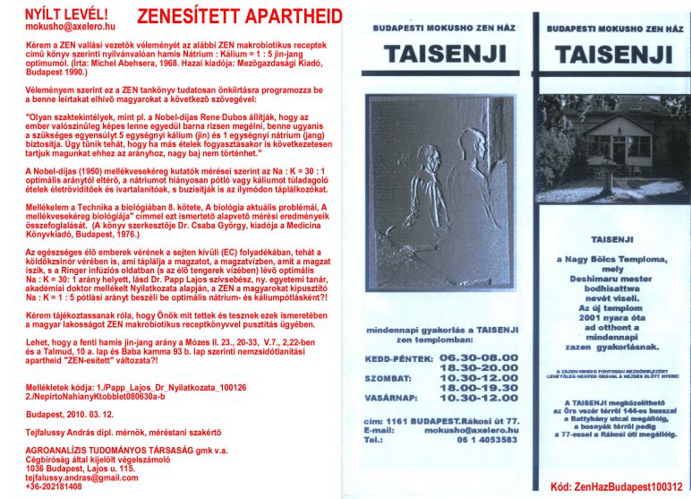Fõtéma: "Ezotériával kombinált" hamis ZEN-recept terjesztésével népirtás?