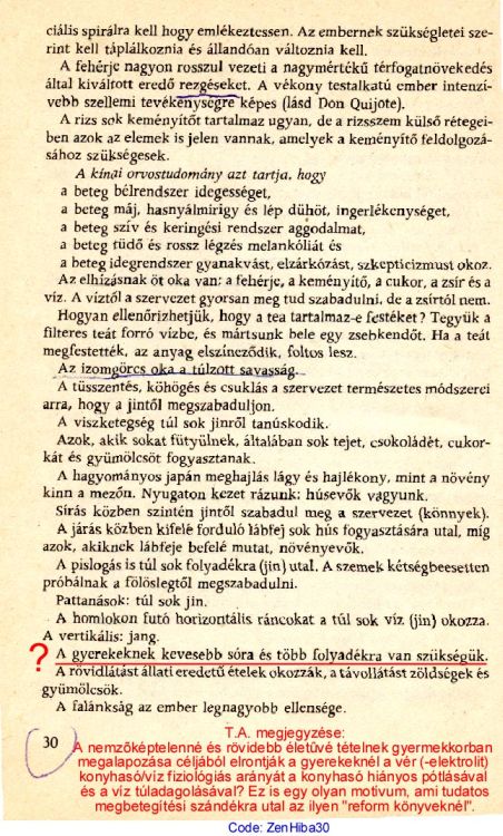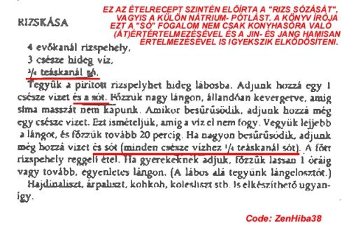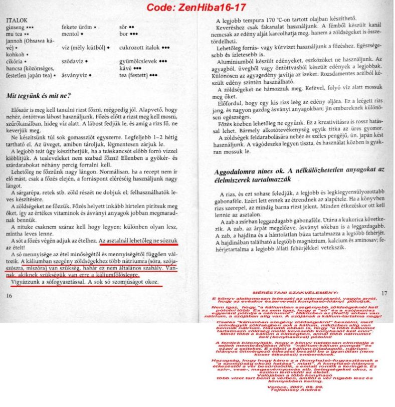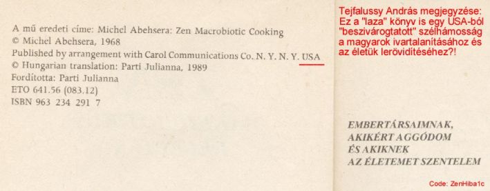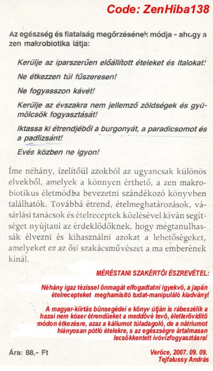 AZ ALÁBBIAKBAN BEBIZONYÍTJUK, HOGY VAN, AKI EGY TÁVOLI NÉP EGÉSZSÉGVÉDÕ ÉTKEZÉSI MÓDJÁT, A "ZENT" TUDATOSAN ÉLETVESZÉLYESRE ÁTALAKÍTVA, HAMISAN TANÍTJA BE AZ EGÉSZSÉGÜKET VÉDENI PRÓBÁLÓ GYANÚTLAN, JÓHISZEMÛ MAGYAROKNAK.