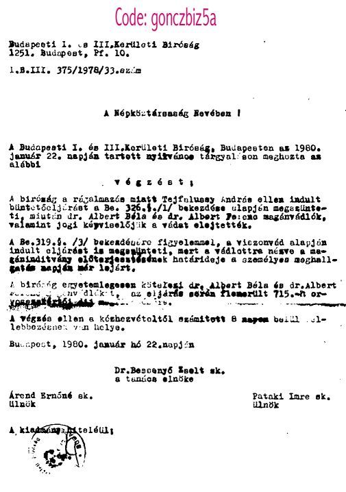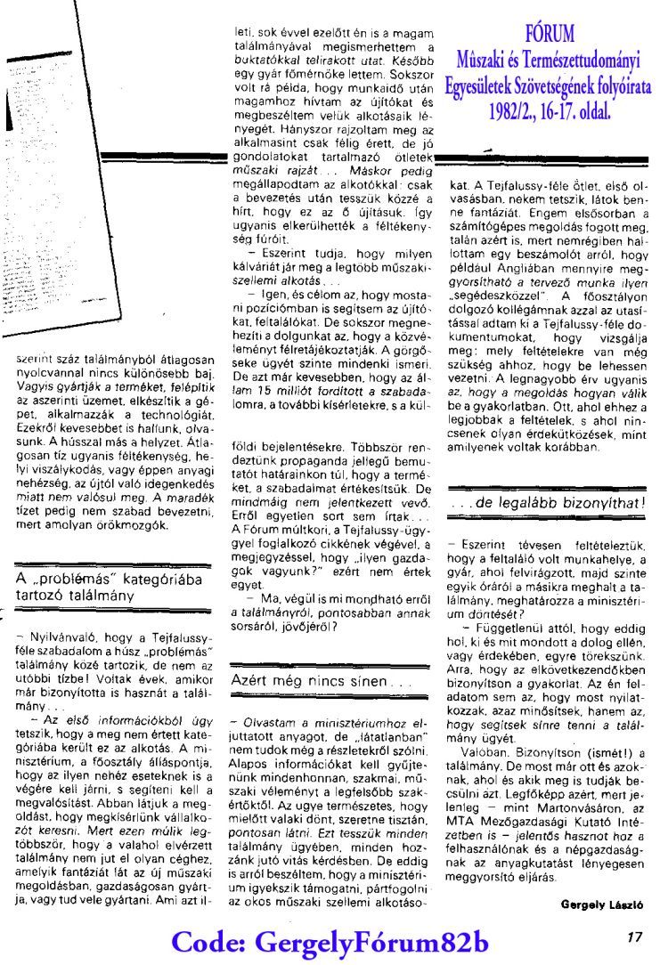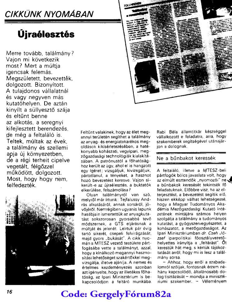 Az anyagkutatási munkákat gyorsító software-hez készült nagyértékû referencia berendezéseket szétveretp dr. Albert Béla csepeli fémmû szinesfém-kohászati kutatóintézeti vezetõt arra felszólító levél, hogy azonnal hagyja abba a szerzõi jogsértést Tejfalussy András találmányainál, melyben Tejfalussy András visszautasítja Albert Béla ellene nyilvánosan hangoztatott rágalmait.