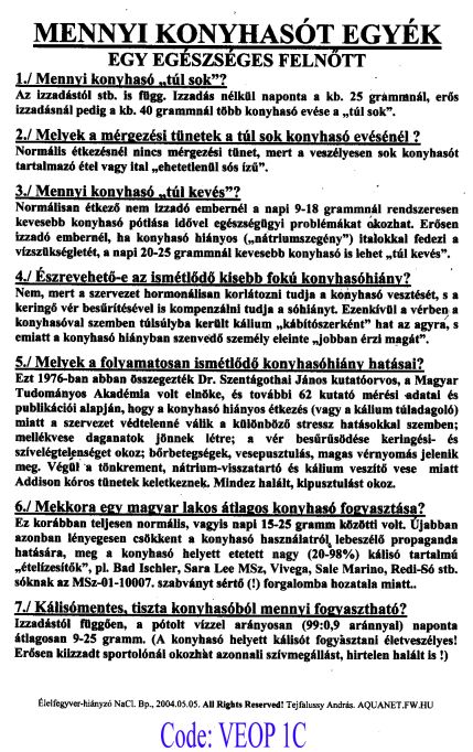Kapják még: Az Országgyûlés Környezetvédelmi Bizottsága részére, Dr. Illés Zoltán úr egészségvédõ kezéhez megküldve, és Dr. Kapolyi László úr akadémikus energetikus részére megküldve, a fenti megoldás megvalósulásának a személyes szakértelmûkkel támogatására kérve Õket, a lakosságpusztító kosher-apartheid lobby-val szemben.