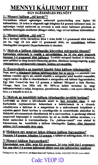fiziológiás kálium tartalmának a helyreállításával