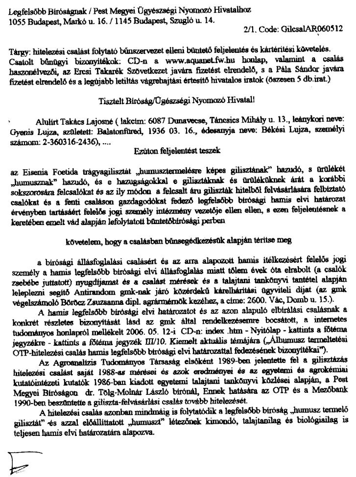 Szíveskedjenek eldönteni, mert lejár a nemzetközi bírósági bejelentésem határideje, ha nem válaszolnak idõben, hogy melyik bíró és bíróság járt el gondosan és szabályosan, az ügyfél jogbiztonságának is a védelmében, és melyiket kell kötelezniük a jogkövetõbb magatartásra, és hogy melyek azok a jogszabályok, amelyeket ki kell kijavítaniuk az ügyfelek jogbiztonságának, a diszkrimináló ügyintézések lehetõségei teljes kizárásának a megalapozásához az alábbi konkrét esetekben, a bizonyítékokat lásd: AQUANET.FW.HU.: