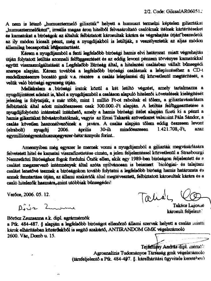 Copy: Legfõbb Ügyész részére. Feljelentem azt az apertheidre uszító alkotmánysértést, hogy a fentieket is engedik tanítani a talmudista iskolákban, a tanítását megengedõ 29.P.85.585/2002. PKKB. sz., a Mazsihisz alperes elleni peremnek a jogerõs másodfokú ítéletére alapozva!