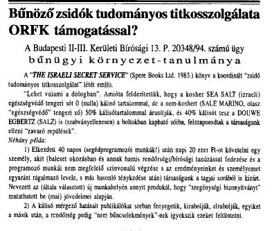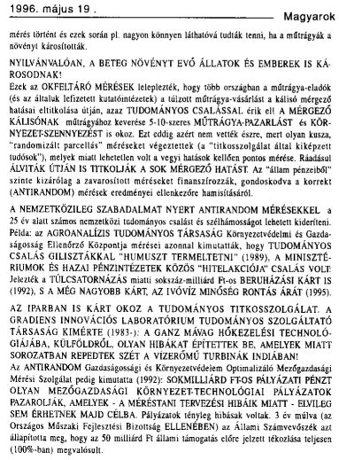 Tejfalussy Andrásék közzéteszik, hogy az egészségügyi tárca népirtást folytattat a tudományos mérések adatainak a meghamisítása alapján, de az elkövetõk letagadják.