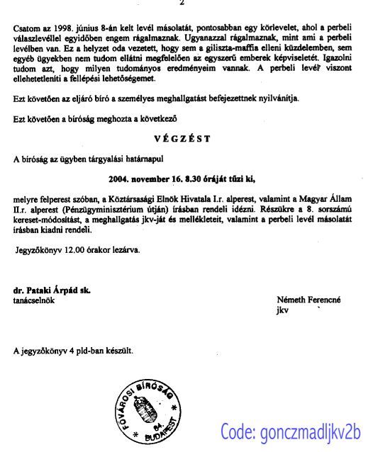 GÖNCZ ÁRPÁD KÖZTÁRSASÁGI ELÖK IKTATOTT, HIVATALOS VÁLASSZAL OKIRATILAG LETAGADTA, HOGY LÉTEZIK ILYEN PER, ÉS EZZEL LEFEDEZTE AZ ALKOTMÁNYSÉRTÕ POLITIKAI-, GAZDASÁGI PSYCHIÁTRIAI VISSZAÉLÉS BÍRÓSÁGON ADDIG ÉS TOVÁBBI ÉVEKIG FOLYTATÁSÁT: