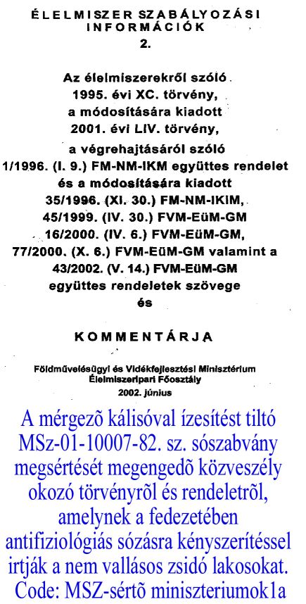 EHHEZ KÉPEST A MAGYAR ÉLELMISZER TÖRVÉNY ÉS RENDELET ÉS A MAGYAR SZABVÁNYÜGZI TESTÛLET IS MEGENGEDTÉK (BÛNPÁRTOLJÁK) A MAGYAR SZABVÁNYT IS SÉRTÕ MÉRGEZÕ KÁLISÓVAL KEVERT SÓK ÁRUSÍTÁSÁT: