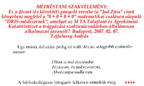 Pl. Dr. Láng István, aki ezután sokáig akadémiai fõtitkár volt, az Agrokémiai és Talajtan c. akadémiai lapban 1961/61-ben közzétette, hogy teljesen megalapozatlan káliummal trágyázni a magyarországi talajokat, s hogy azt a külföldi káliumszindikátus szorgalmazza ugyan, de õ személyesen ellenzi. Ezután viszont, ugyanú, mint MTA fõtitkár és Talajtani Bzottságo vezetõ, utazási lehetõségekhez, tudományos fokozatokhoz és jeletõsebb mûszerbeszerzási támogatásokhoz és kutatási pénzekhez juttatta azokat, akik Magyarország termõterületei mérgezõ kálisóval tûlmûtrágyáztatását, s ezóton aszályossá tételét, s ezzel Magyarország paraszti gazdálkodásának a hosszú idõre való veszteségessé tételét és közben az ország nem vallásos zsidó lakosai antifiziológiás étkezési káliumfogyasztással megbetegítését és ivartalanítását, azaz kirablását és kipusztítását szervezték és fedezték a mérési csalásaikkal, mint pl. Kádár imre is, a DRIS csalási módszert terjesztõ alábbi könyv írója (és e könyv tudományos lektorai):