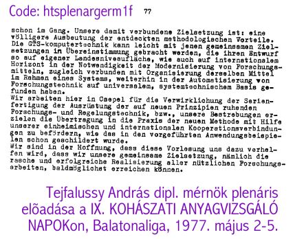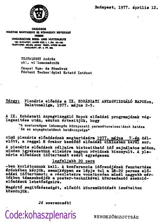 MEGHÍVÁS NEMZETKÖZI KOHÁSZATI KONFERENCIÁRA PLENÁRIS ELÕADÓNAK