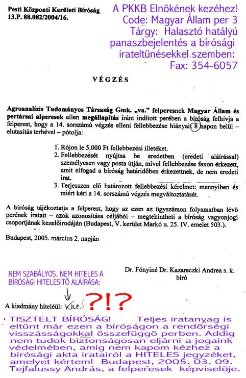Az iratok eltüntetési lehetõségére, és a bírói végzések nem hitelességének a bírósággal szemben bizonyíthatatlanságára ére alapozva tetszõlegesen hamis ítéleteket lehet hozni, amelyekben a bizonyítékokat figyelmen kívûl hagyhatják, vagy ellenkezõ értelemmel hivatkozzák, tudva, hogy késõbb majd nyomtalanul eltüntethetõk a bírói közokirat hamisításuk bizonyítékai az aktából.
