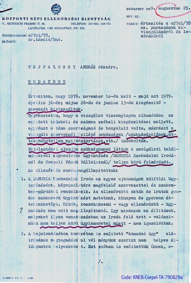panaszbejelentésem alapján a 02701/78. KNEB számú