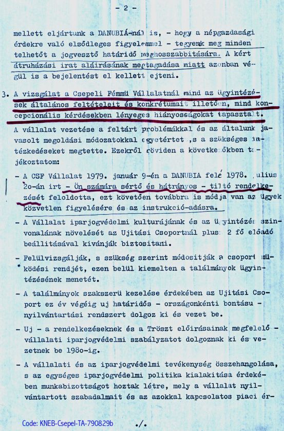 a DANUBIA Szabadalmi Iroda felé, ill. az OTH