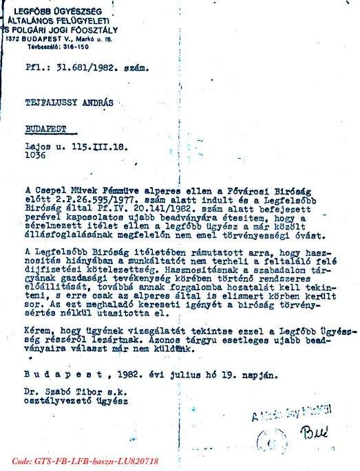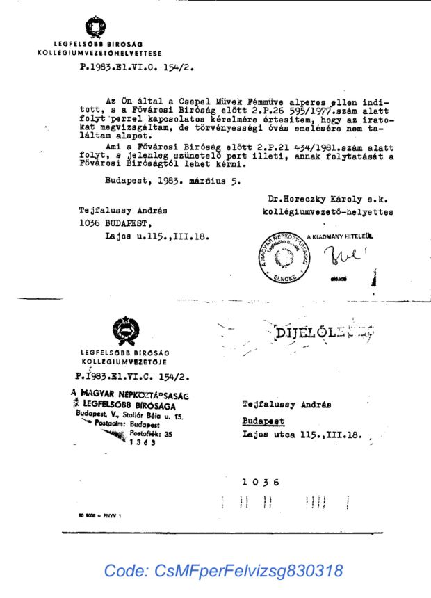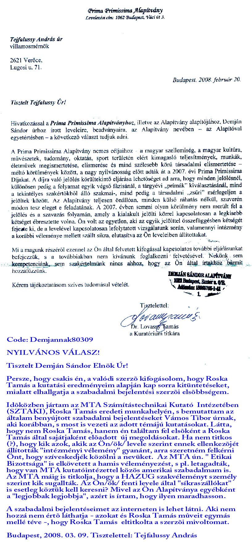 További dokumentumok a Magyar Tudományos Akadémia által Tejfalussy András és társai ellen tudatosan folytatott szerzõi jog sértésekrõl.