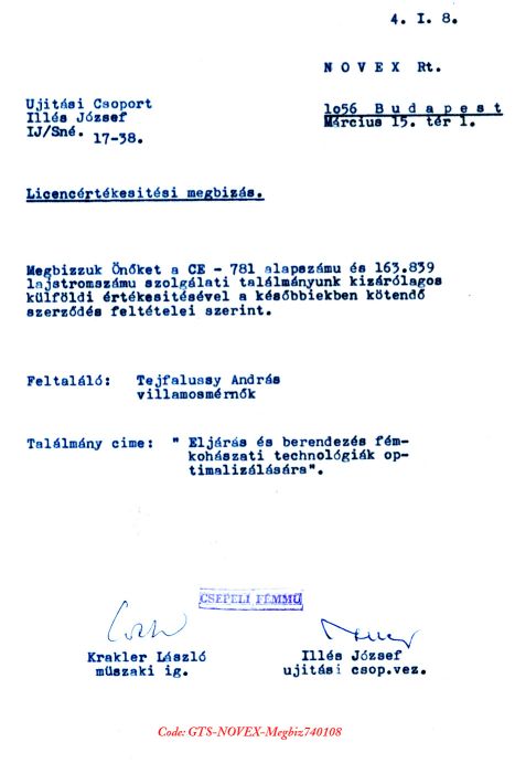 Fõtéma: A TEJFALUSSY ANDRÁS ÁLTAL FELTALÁLT "INHOMOGÉN SZÁMÍTÓGÉP RENDSZER" MTA-SZTAKI-NÁL FOLYTATOTT FEJLESZTÉSEI CSEPEL MÛVEKI ÉS AZON KÍVÜLI TOVÁBBI TUDOMÁNYOS KUTATÁSI ÉS SZERZÕDÉSI HÁTTERE